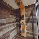 每间浴室里都有淋浴,吹风机和浴巾.